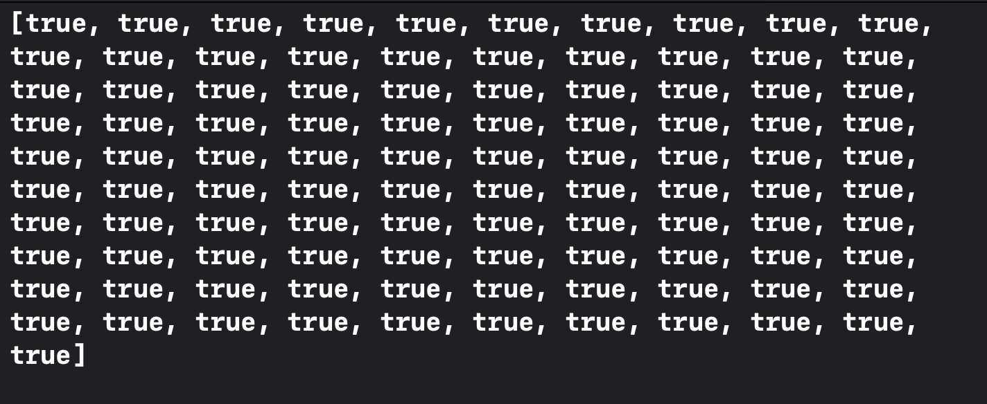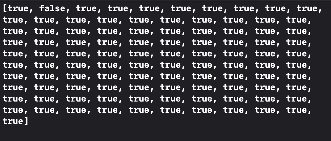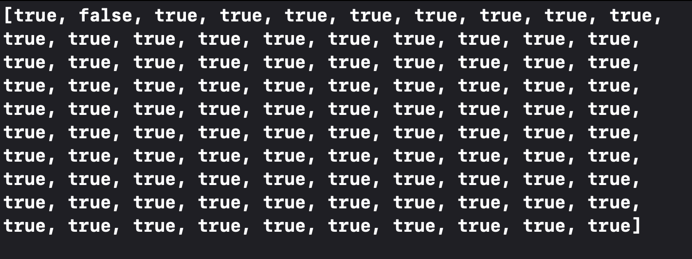 요런 결과가 나오는데 이제 소수인 true 값만 뽑아서 print 해주면 됨