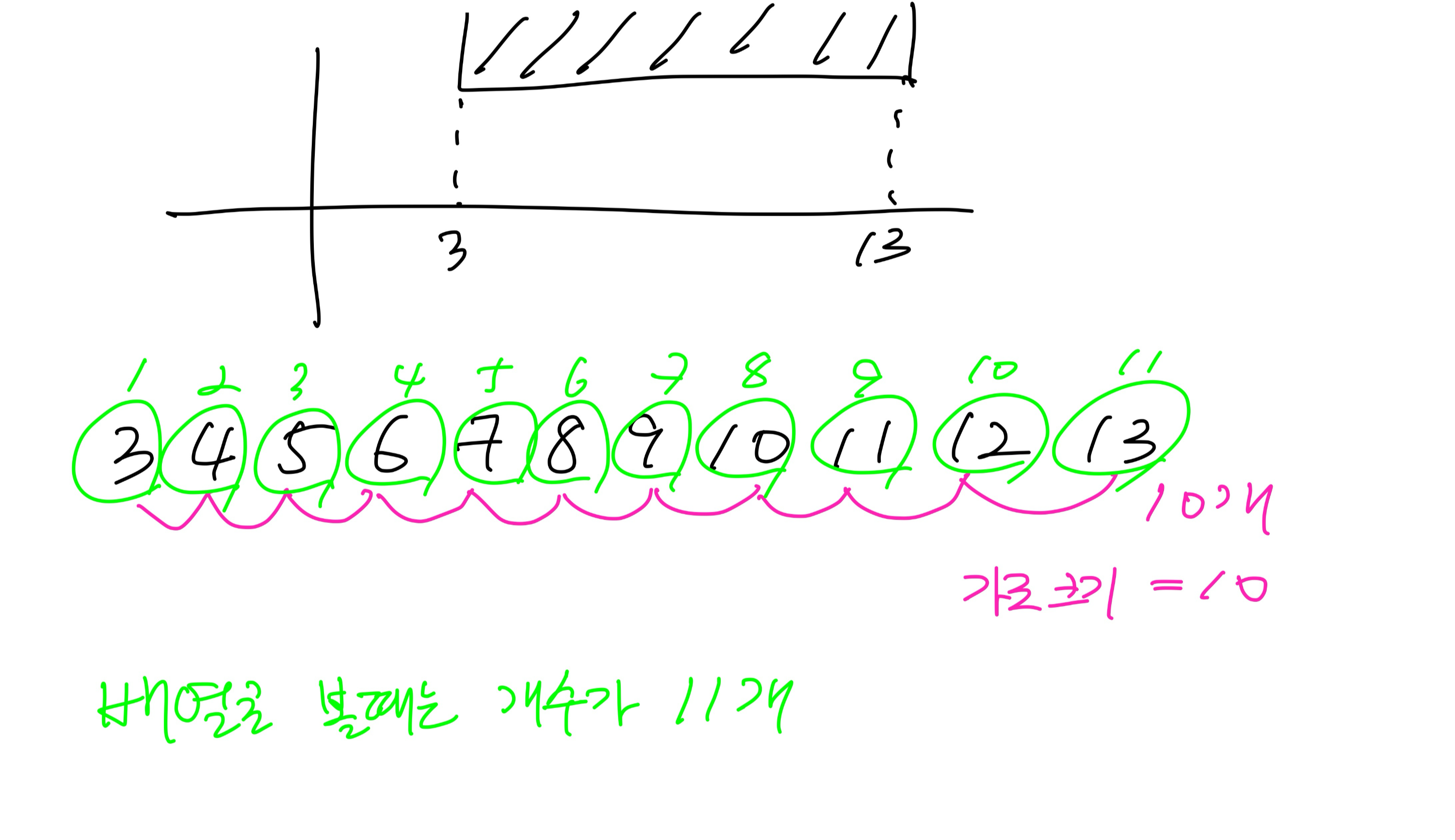 그래야지 3 ~ 12까지 10개가 되어서 크기가 10인걸 배열로 표현할 수 있음.