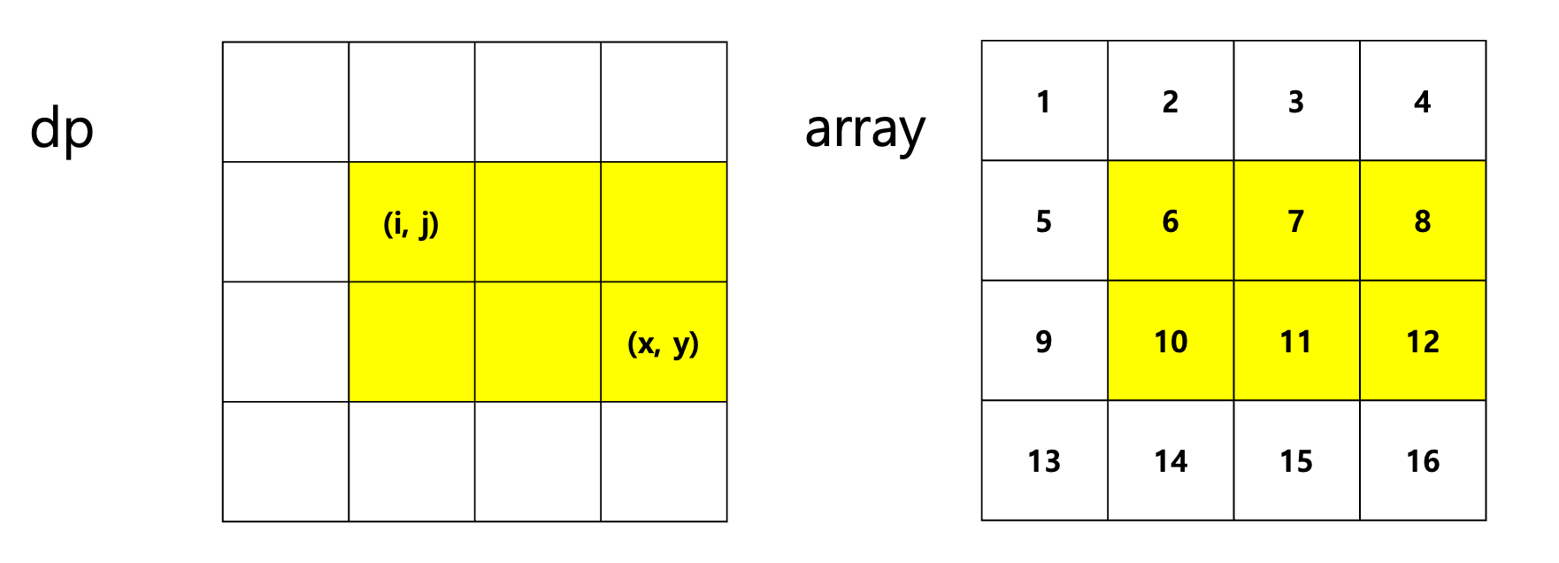 (i, j) ~ (x, y)까지 배열의 합을 어떻게 구하냐면!