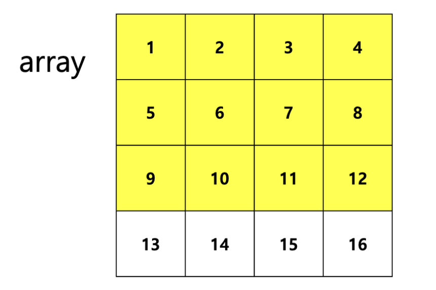 (2,3)을 오른쪽 아래 끝점으로 하는 2차원 배열의 사각형은 위와 같음