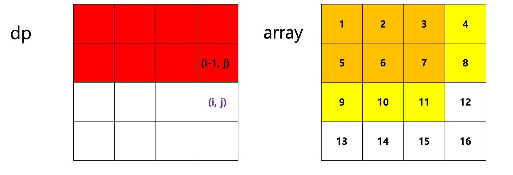dp의 (x, y)는 위와 같이 노란색 영역이 모두 더해져 있음.