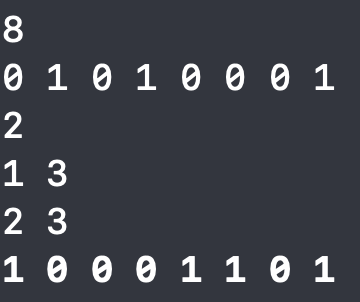 // 첫째 줄에는 스위치 개수가 주어진다. 스위치 개수는 100 이하인 양의 정수이다