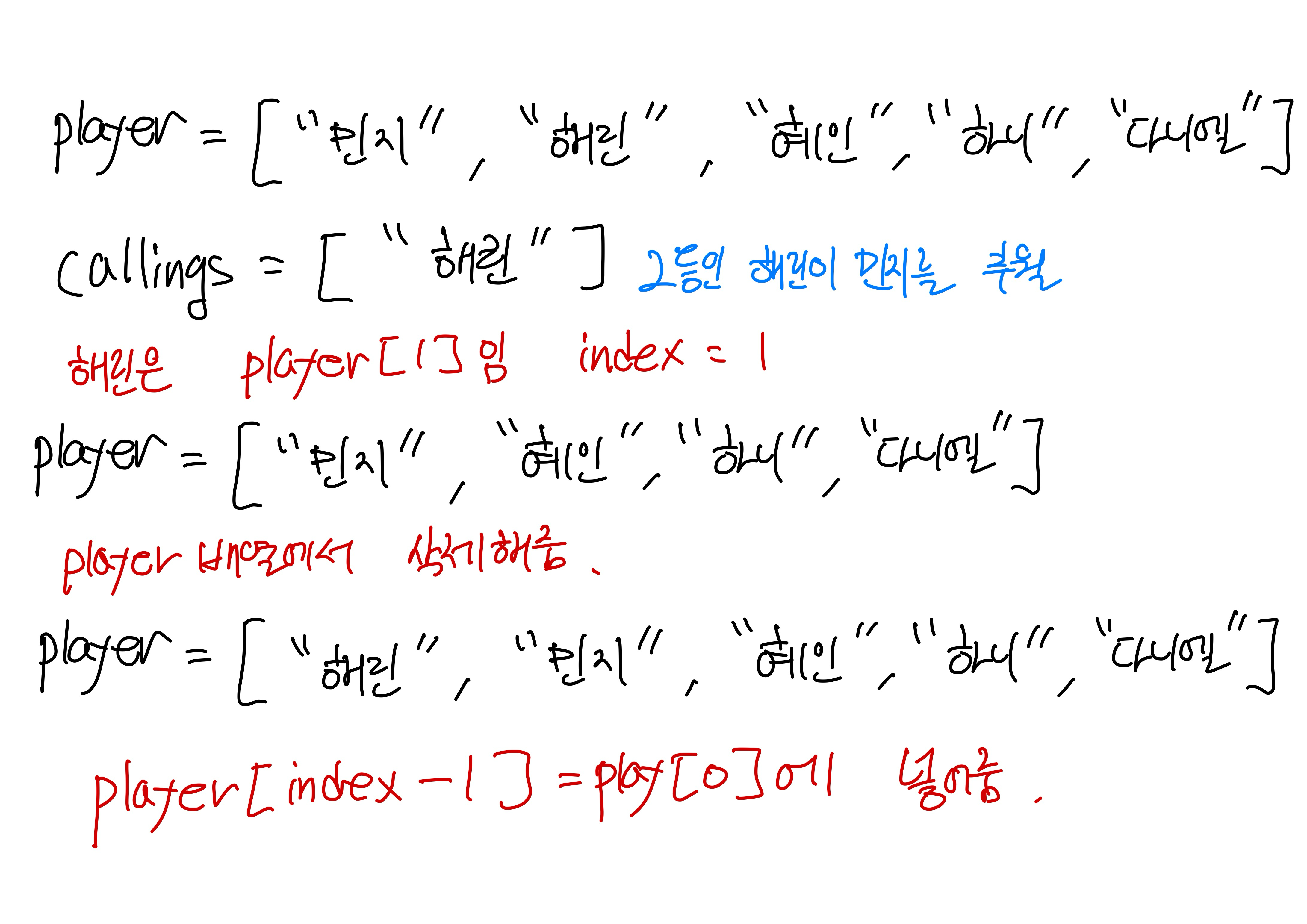 callings배열에 이름이 들어가 있다면 players 배열의 index를 기준으로 index-1가 되는 것임.