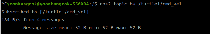메시지의 대역폭, 즉 송수신받는 토픽 메시지의 크기를 확인해 볼 수 있음.