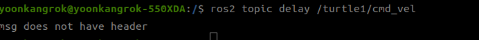 `Twist` 메시지는 단순히 선속도와 각속도 정보를 담고 있으며, 타임스탬프와 같은 메타데이터를 포함하지 않습니다. 그래서 `ros2 topic delay`는 이를 사용할 수 없다고 함.