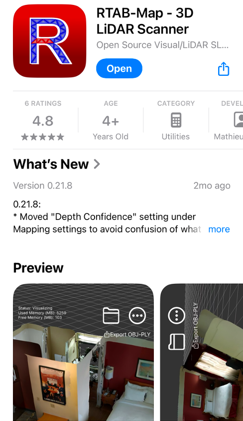 AppStore에서 RTAB-Map 3D LiDAR Scanner 어플을 사용하여 Mapping을 진행.